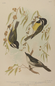 Falcunculus frontatus, F. leucogaster,